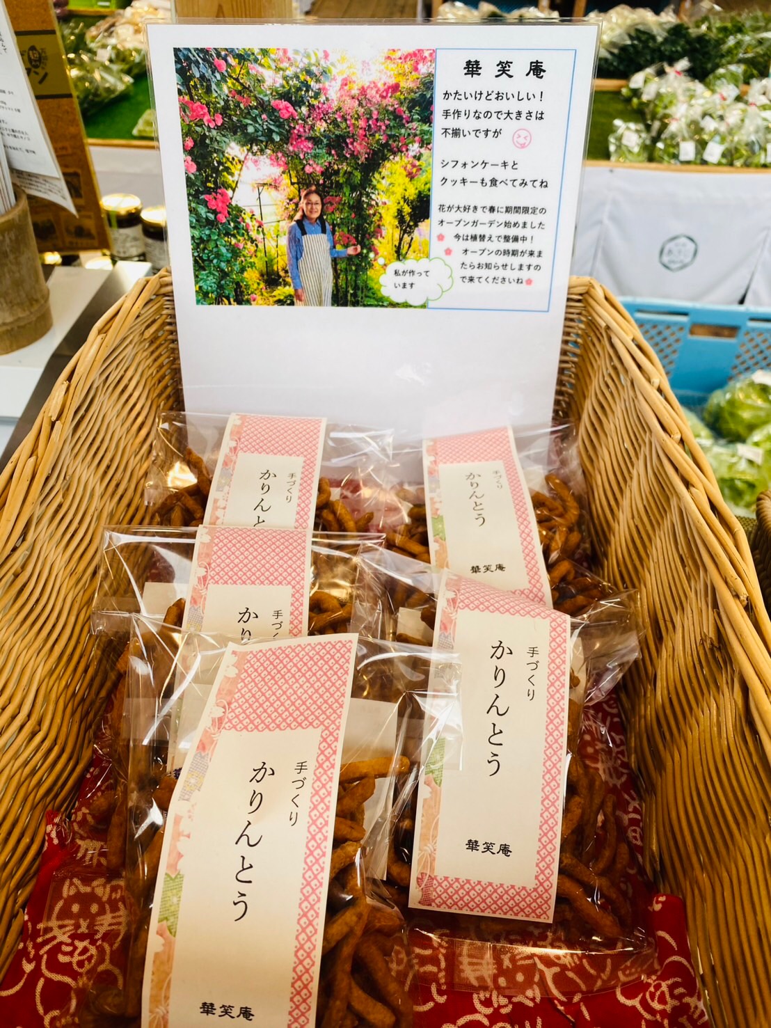 かりんとうは優しい甘さ シナモンくるみクッキー 公開済み: 2026年3月5日更新: 2026年3月5日作成者: Masajiカテゴリー: お知らせ, ブログ, 特産品紹介 道の駅あさじです 本日は華笑庵さんの 手作りかりんとうと、クッキーをご紹介 かりんとうは優しい甘さがクセになり とまらない美味しさです♪ 江戸時代から食文化の一環として 繁華街に深く根付くようになったと 言われているかりんとう 味や形は時代と共に変化しながら 日本で長く愛され続けているお菓子です 手作りかりんとうは、 道の駅あさじオープン当初から親しまれてきた味が 継承されています 手作りクッキーは 〇シナモンくるみクッキー 〇ディアマン・紅茶 〇サブレ・ショコラ の3種類です♡ 手作りの美味しさは唯一無二 おやつやお土産にぜひ、 お買い求めくださいませ 関連記事 綿田米の新米2022 […] 公開済み: 2022年9月27日更新: 2022年9月27日作成者: Masajiカテゴリー: お知らせ, ブログ, 特産品紹介 31 春は山菜 タラの芽の天ぷらにセリの卵とじ ヤーコンの天ぷら […] 公開済み: 2021年3月31日更新: 2021年3月31日作成者: Masajiカテゴリー: お知らせ, ブログ, 特産品紹介 道の駅あさじ秋まつり […] 公開済み: 2021年11月14日更新: 2021年11月14日作成者: Masajiカテゴリー: お知らせ, ブログ, 特産品紹介