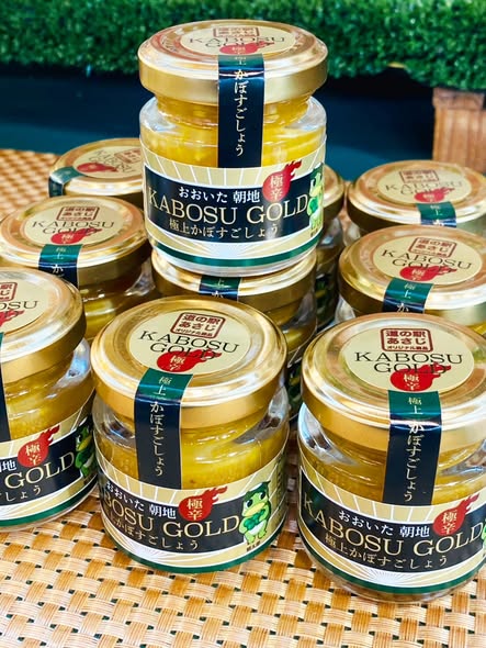 【KABOSU GOLD】極上かぼすこしょう 公開済み: 2026年3月12日更新: 2026年3月12日作成者: Masajiカテゴリー: お知らせ, ブログ, 特産品紹介 道の駅あさじです 本日の商品紹介はこちら! 【KABOSU GOLD】 豊後大野市産の完熟かぼすと、 黄色とうがらしを使用した極上かぼすこしょう 鍋物やおでん、肉料理や魚料理、麺類にも♪ 色々なお料理のアクセントにお使いください ピザにも合いますよ 駅長おすすめは、納豆に混ぜて食べること 辛味が強いので、少量ずつお試しください KABOSU GOLDは道の駅あさじオリジナル商品です!辛いもの好きな方へのお土産にもぜひ 関連記事 美味しい道の駅あさじのお弁当! […] 公開済み: 2026年2月17日更新: 2026年2月17日作成者: Masajiカテゴリー: お知らせ, ブログ, 特産品紹介 27 新鮮野菜 白ねぎ 長いも しいたけ […] 公開済み: 2026年2月27日更新: 2026年3月1日作成者: Masajiカテゴリー: お知らせ, ブログ, 特産品紹介 11 スタンプラリーは 3/8終了!抽選して当選決定! […] 公開済み: 2026年3月11日更新: 2026年3月12日作成者: Masajiカテゴリー: お知らせ, ブログ, 特産品紹介